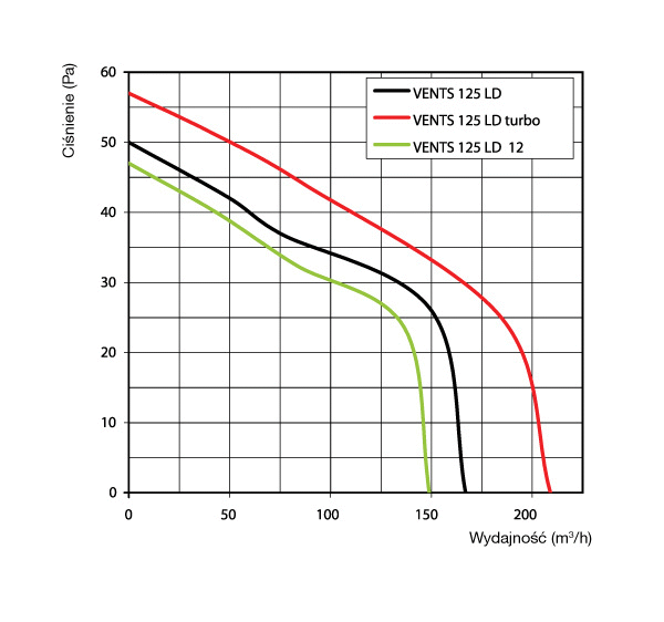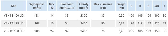Wentylator Osiowy Vents LD wykonany z plastiku, domowy, preferowany montaż ścienny lub opcjonalnie sufitowy. Wentylatory wywiewne, zapewniające wysoki poziom komfortu, przeznaczone do wentylacji pomieszczeń mieszkalnych, łazienek, węzłów sanitarnych itp. Wentylacja o wydajności do 265 m3/h. Przeznaczone do montażu w ciągach wentylacyjnych lub do łączenia z kanałami wentylacyjnymi Ø100, 125 i 150 mm.
