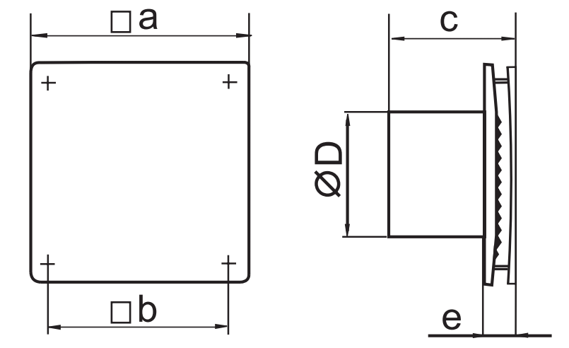 - Króciec wylotowy pozwala wmontować wentylator w ciąg wentylacyjny lub przyłączyć do kanału wentylacyjnego Ø 100, 125 i 150 mm.