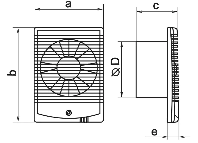 - Wentylator sterowany jest za pomocą pokojowego włącznika światła. Włącznik nie wchodzi w skład wyposażenia standardowego.