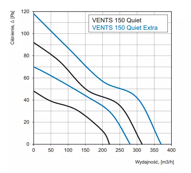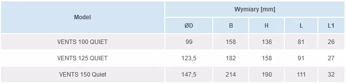 - Wentylator: VENTS 150 Quiet dodatkowo posiada specjalną przekładkę antywibracyjną na wewnętrznym obwodzie korpusu, redukującą wibracje od silnika.