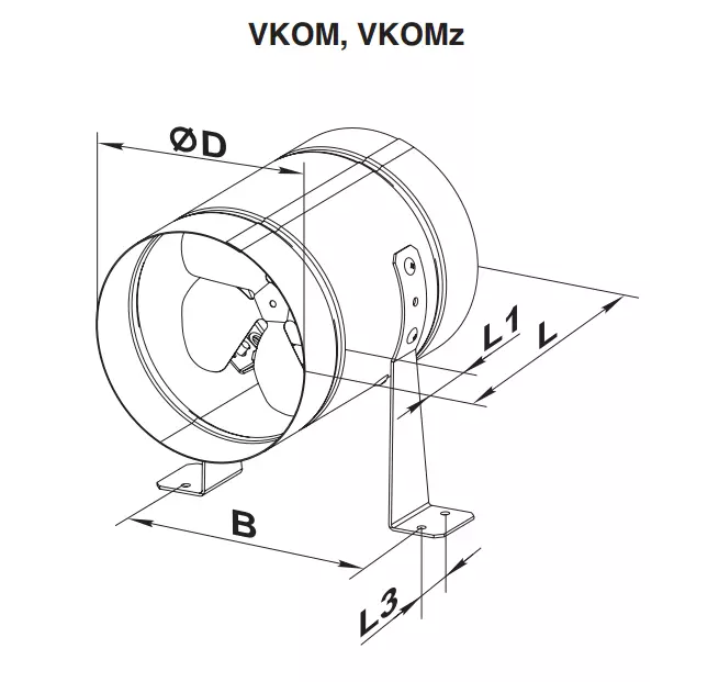 VKOM, VKOMz – montaż w systemie wentylacyjnym lub bezpośrednio na ścianie za pomocą uchwytów montażowych znajdujących się w zestawie z wentylatorem.