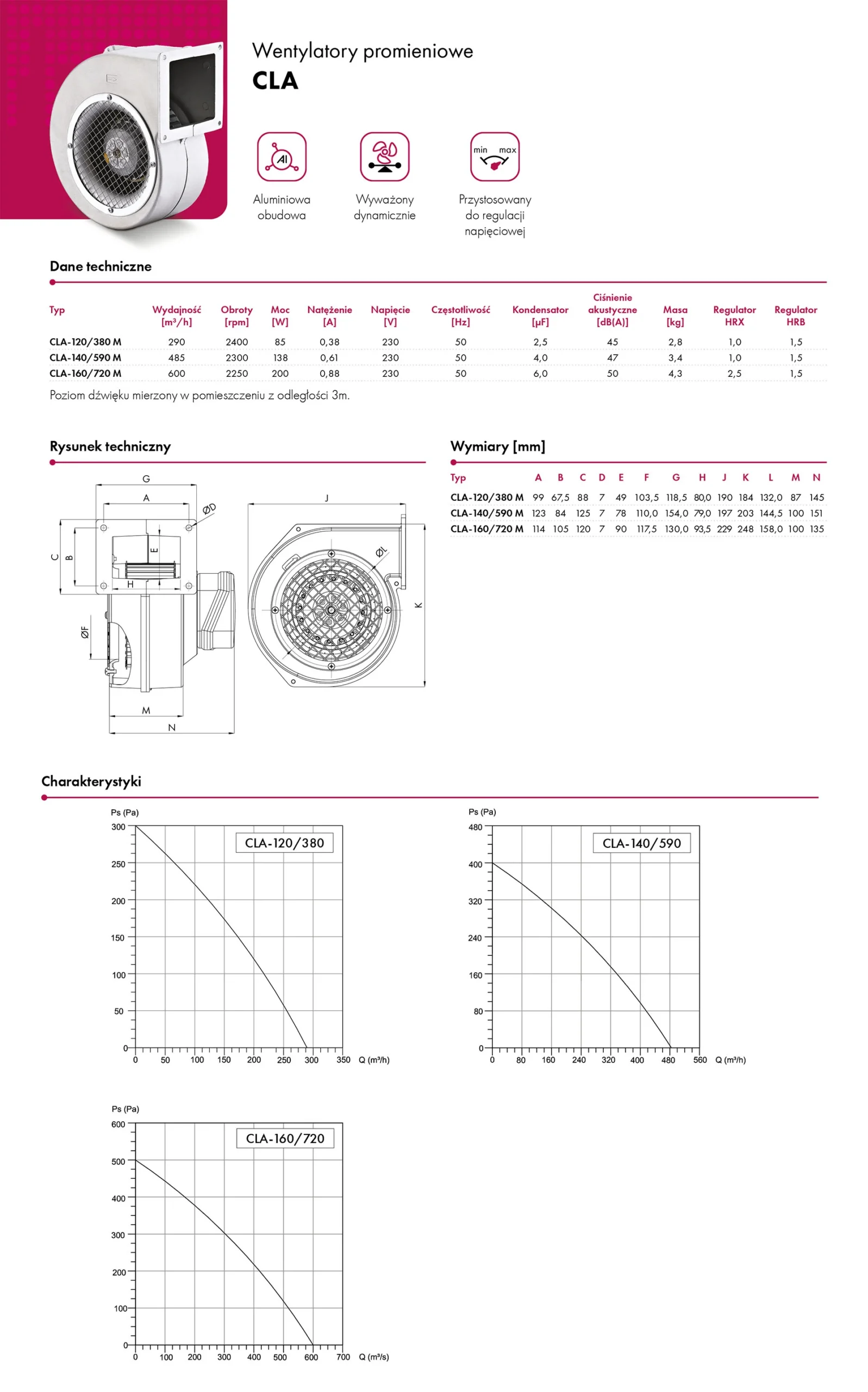 Dzięki zwartej i kompaktowej budowie, wentylatory CLA sprawdzają się znakomicie w instalacjach chłodzenia szaf sterowniczych, silników elektrycznych, a także w instalacjach nadmuchowych do kotłów C.O.