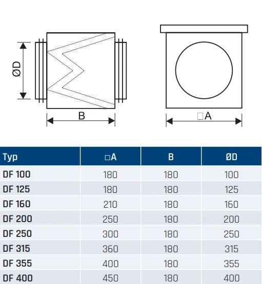 Wkłady EU3 dostępne są w różnych wymiarach, dopasowanych do filtrów DF montowanych w kanałach wentylacyjnych o średnicach od 100 do 400 mm. Dzięki standaryzacji wymiarów montaż i wymiana wkładu są szybkie i intuicyjne, co przekłada się na ograniczenie czasu serwisowania.