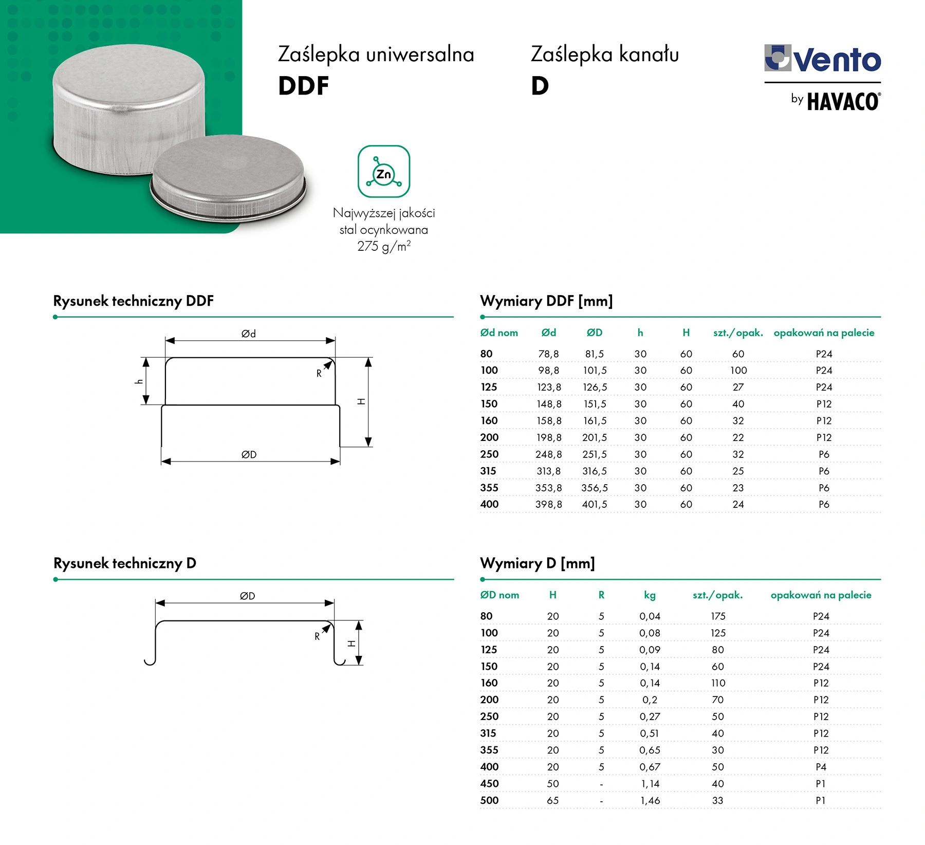 Zaślepka kanału D Vento wykonana z najwyższej jakości stali w pełnym ocynku 275 g/m2.