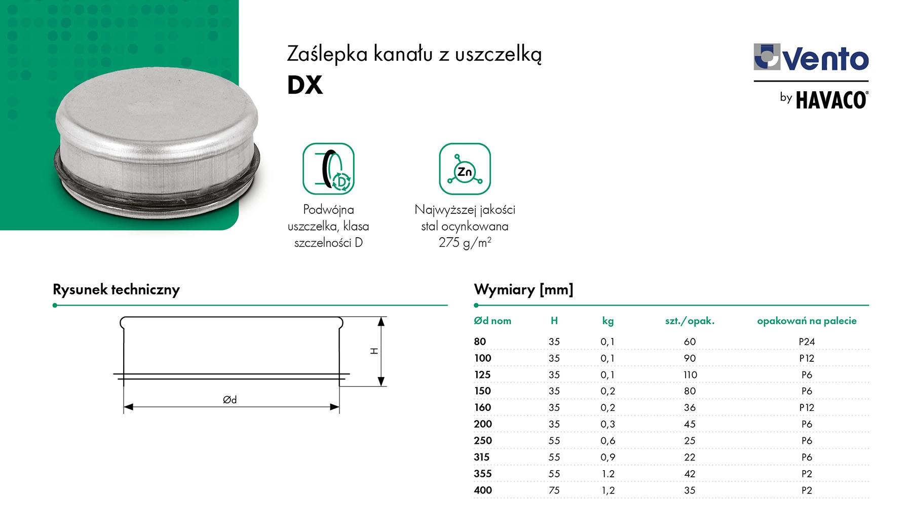 Zaślepka kanału z uszczelką DX – Vento by HAVACO