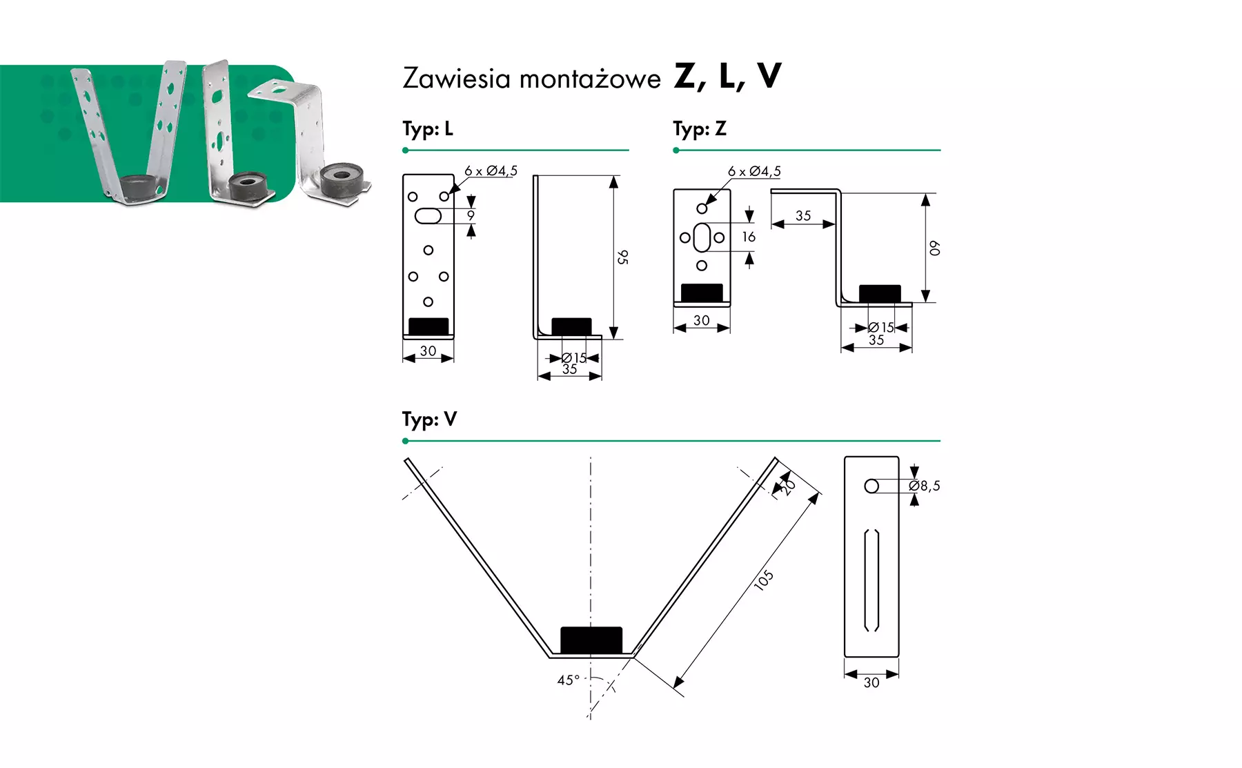 - Zawiesia montażowe do kanałów prostokątnych.
