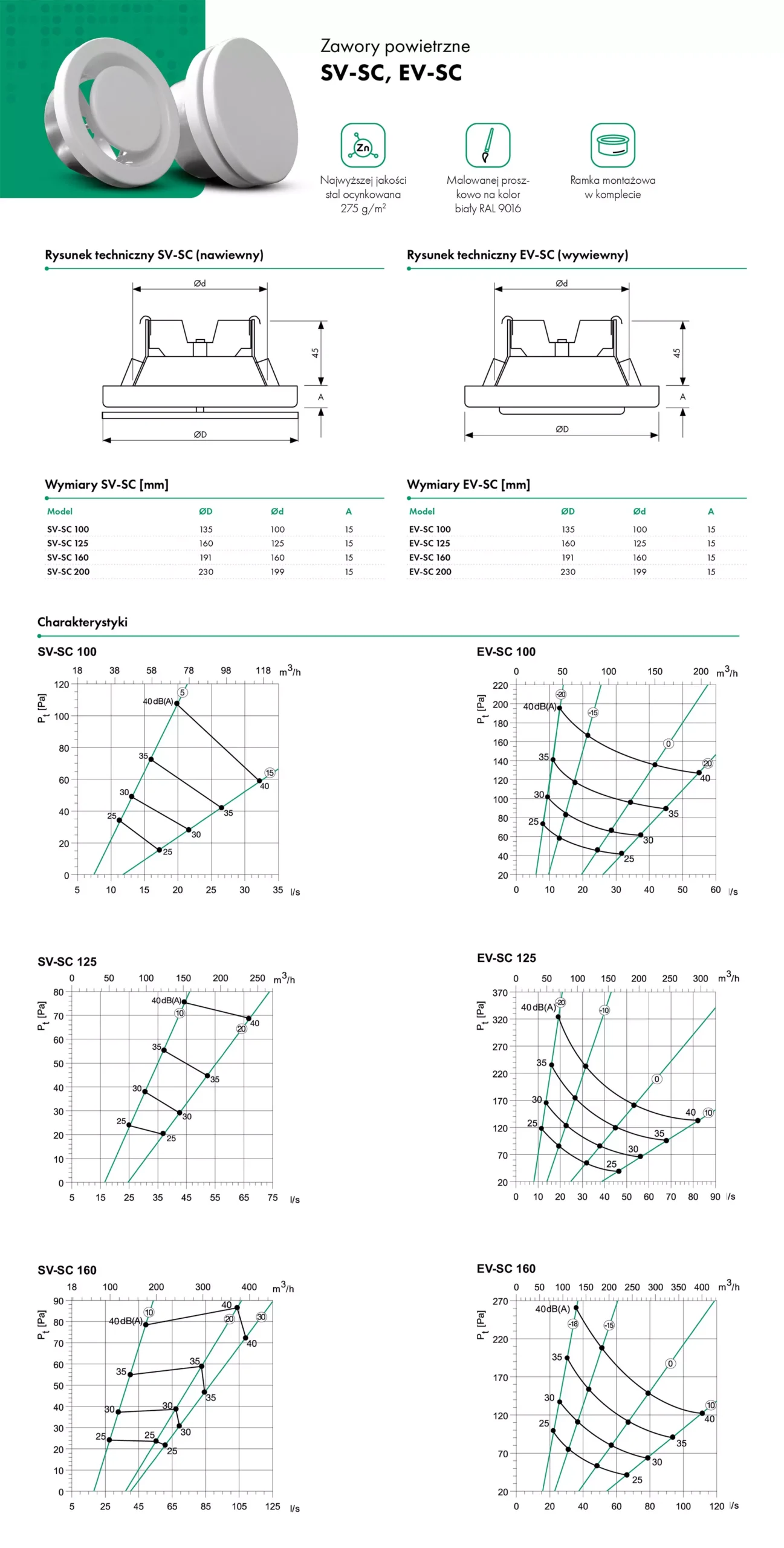 Zawór nawiewny SV-SC przeznaczony do montażu w suficie, ścianie lub bezpośrednio na kanale za pomocą specjalnej ramki montażowej