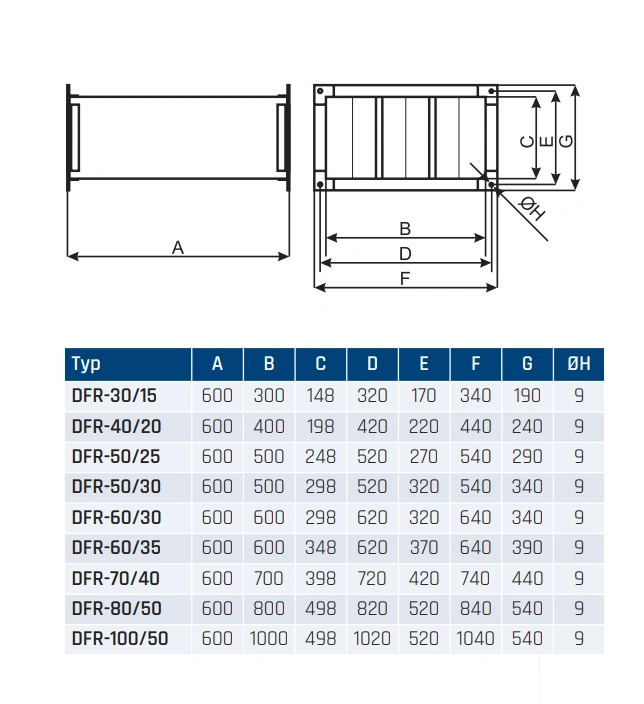 Zestaw DFR został zaprojektowany z myślą o maksymalnej kompatybilności z prostokątnymi kanałami wentylacyjnymi stosowanymi w większości instalacji wentylacyjnych w budynkach użyteczności publicznej, komercyjnych, przemysłowych, a także w systemach technologicznych. Prosta, modułowa konstrukcja ułatwia montaż oraz integrację z istniejącymi systemami, a zastosowanie wkładów kieszeniowych umożliwia zachowanie dużej powierzchni filtracyjnej przy stosunkowo niewielkich wymiarach urządzenia.