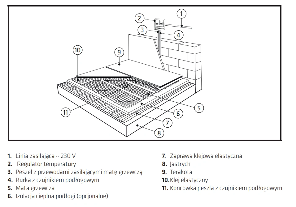 Rodzaj zestawu: komplet montażowy z przewodem grzejnym i ekranem ochronnym